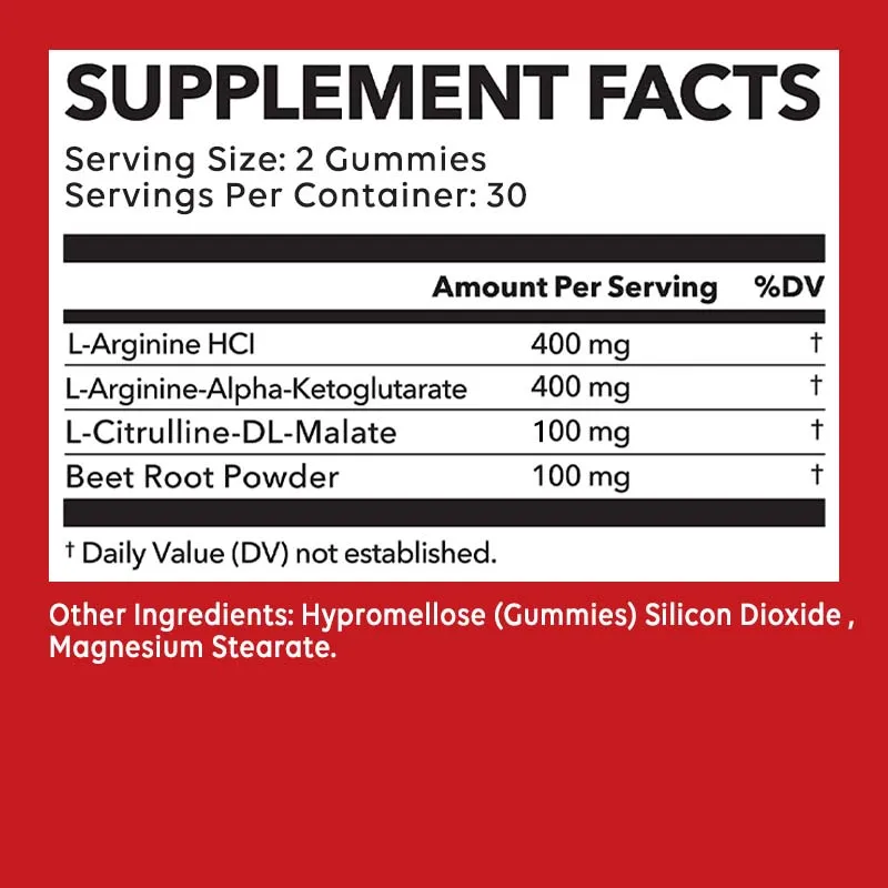 Ingredients: L-arginine, L-citrulline, beetroot